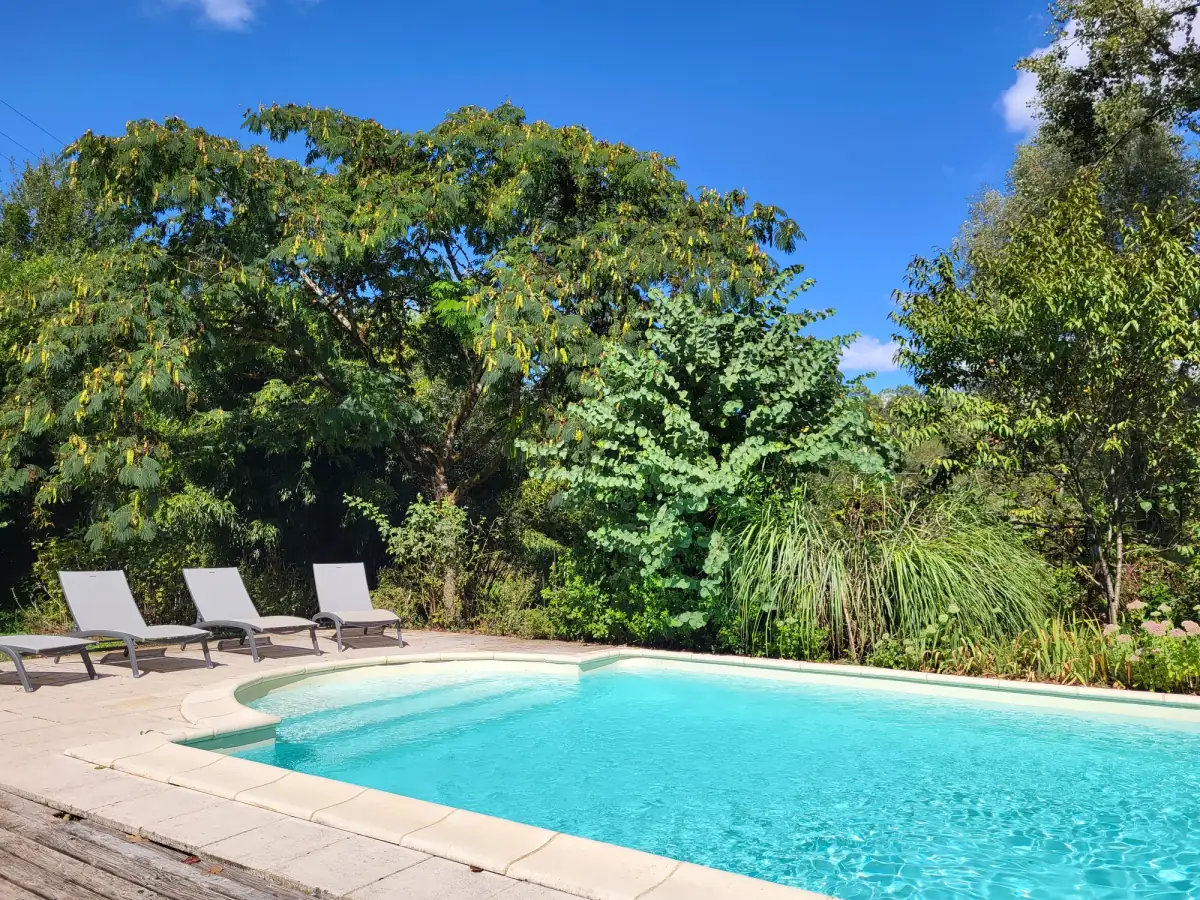 Loin des écrans et du stress quotidien, vous avez le choix entre vous rafraîchir dans la grande piscine au sel (5x12m), vous reposer sur un des transats de la terrasse ensoleillée et profiter des arbres du jardin-forêt : vous balader dans le potager, autour de l'étang ou au bord de la rivière l'Enea.